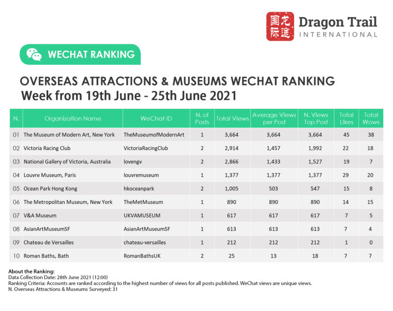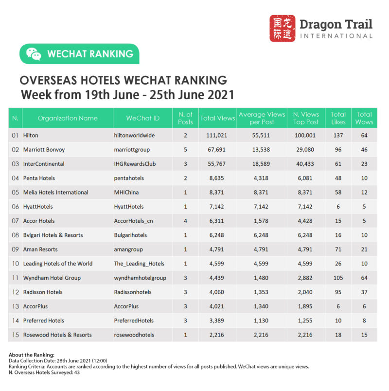 Ranking criteria: Accounts are ranked according to the highest number of views for all posts published. WeChat views are “unique views”.