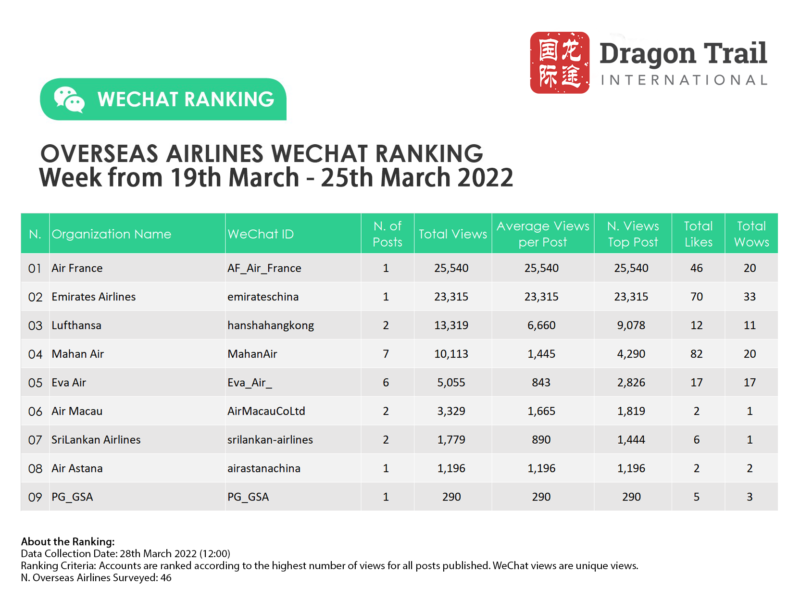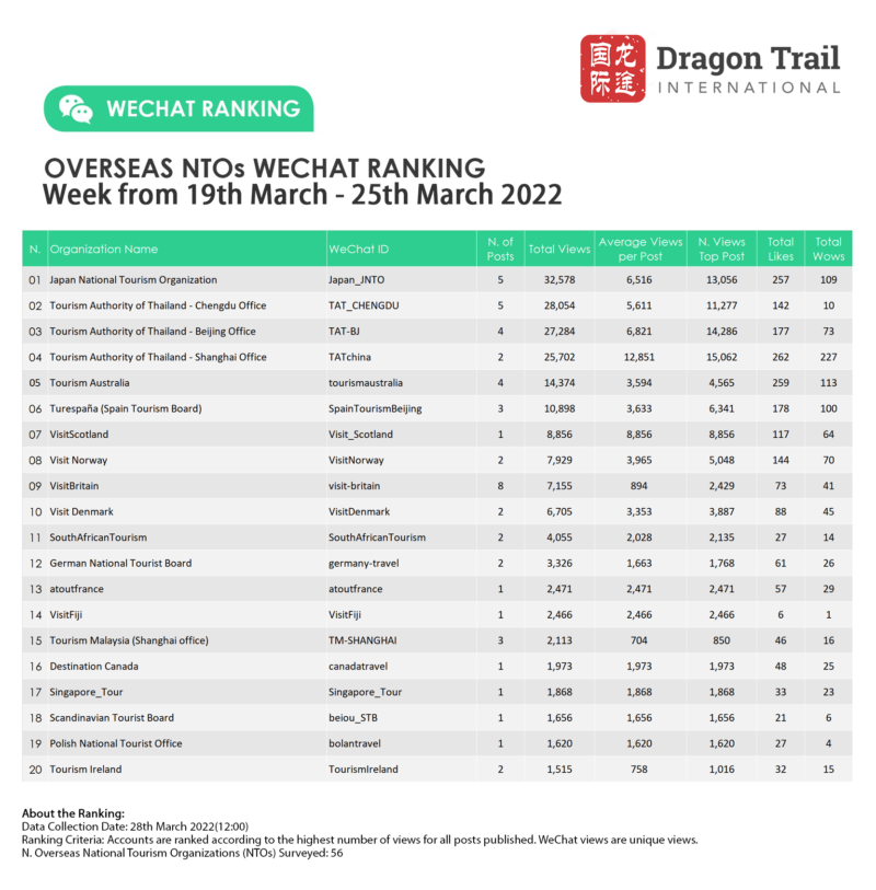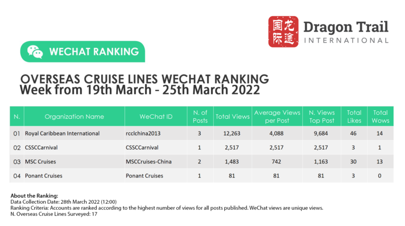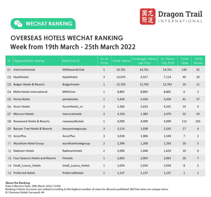 Ranking criteria: Accounts are ranked according to the highest number of views for all posts published. WeChat views are “unique views”.