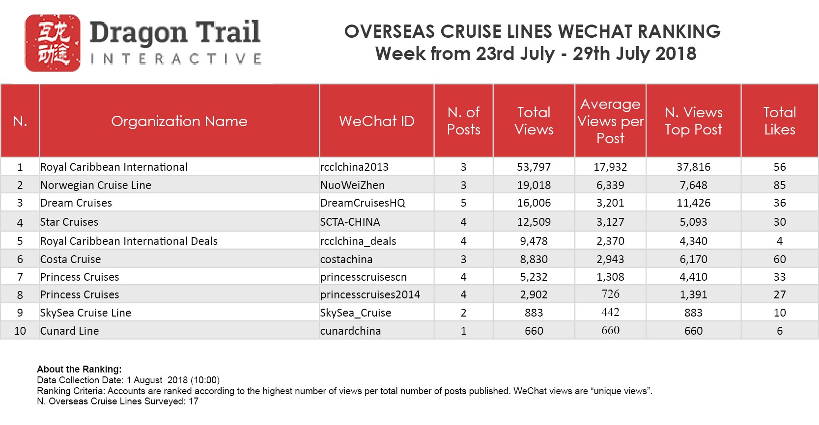 Ranking criteria: Accounts are ranked according to the highest number of views per total number of posts published. WeChat views are “unique views”.