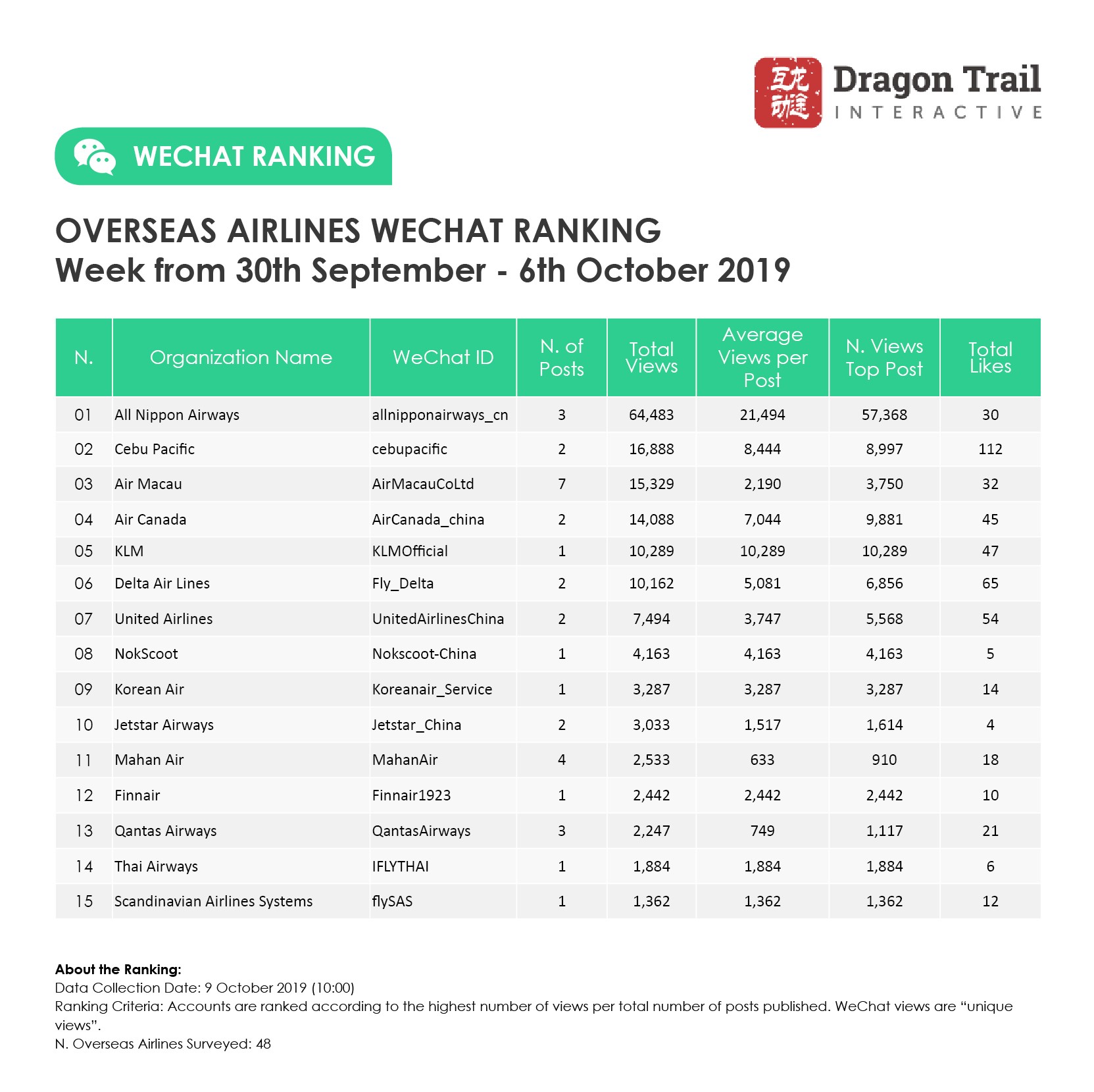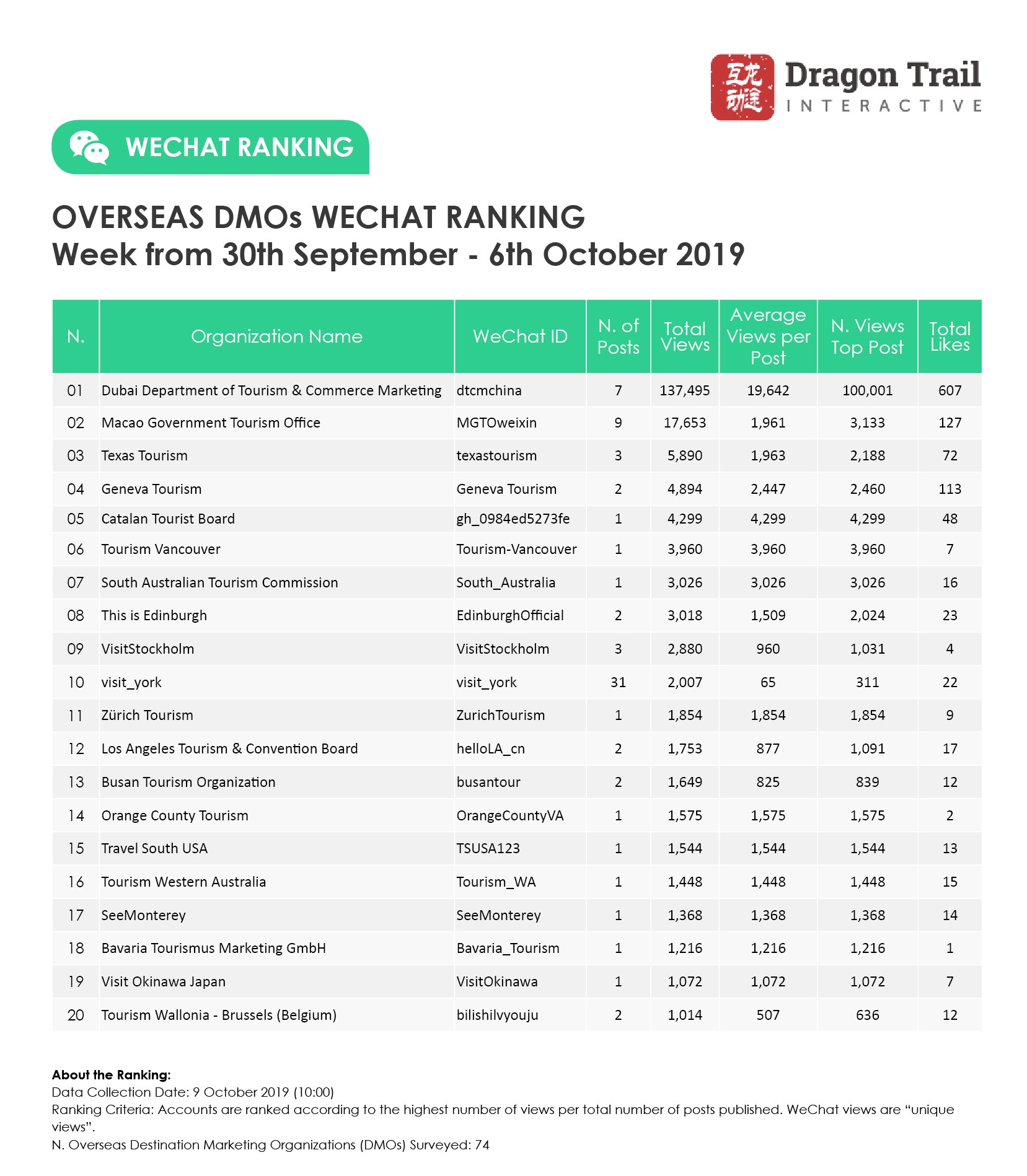 WeChat Weekly Rankings: Destinations, Airlines, Cruises, Attractions and Hotels – 30 September – 6 October 2019