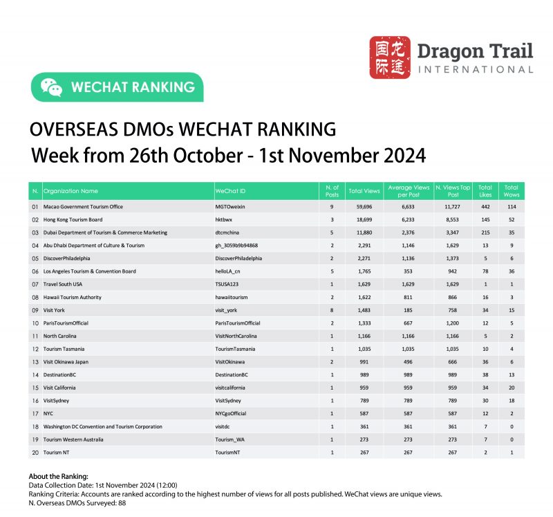 Ranking criteria: Accounts are ranked according to the highest number of views for all posts published. WeChat views are “unique views”.