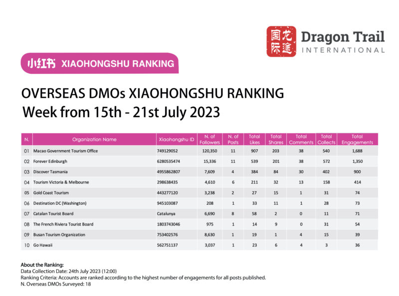 N. overseas regional and city Destination Marketing Organizations (DMOs) surveyed: 18