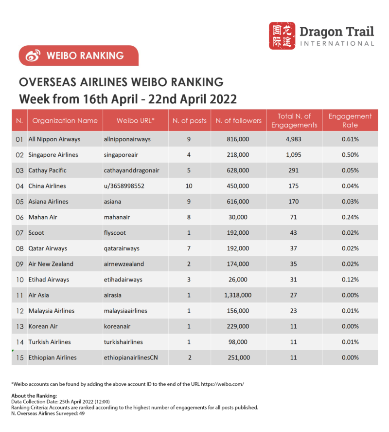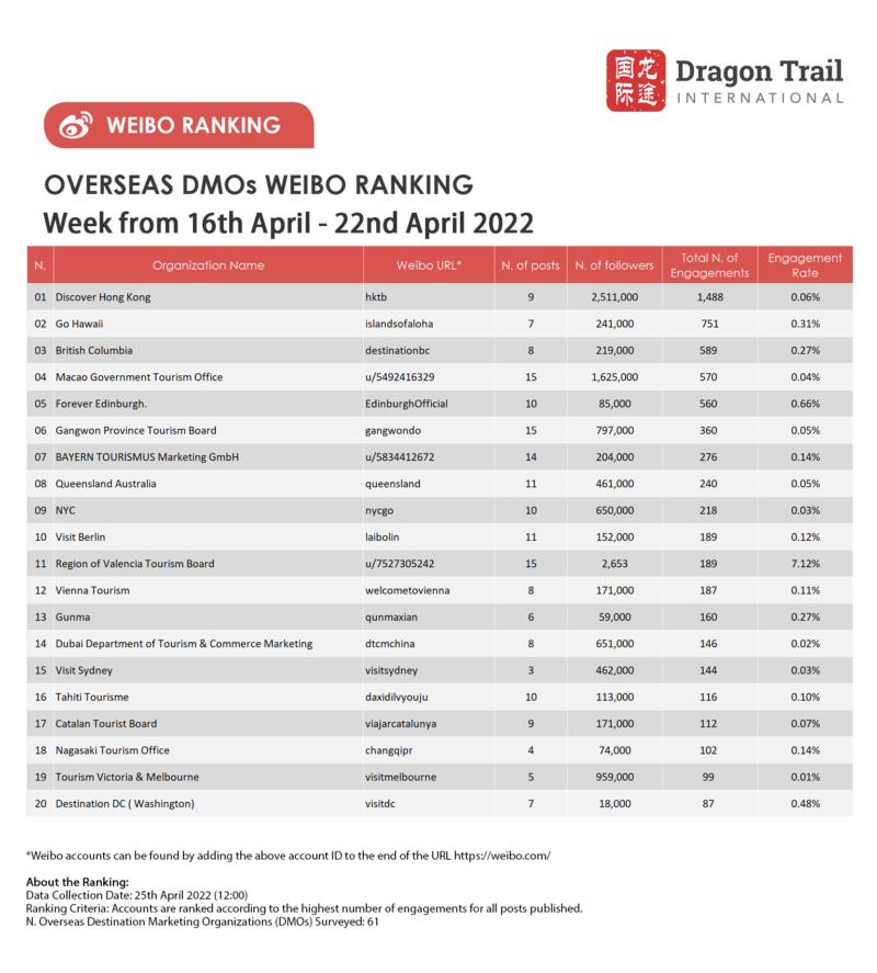 Ranking criteria: Accounts are ranked according to the highest number of engagements for all posts published.