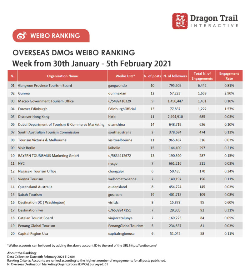 About the data: The data is jointly collected and compiled by Dragon Trail Interactive and Dingla, a B2B travel marketing platform assisting foreign organizations build long term travel trade relationships in China.