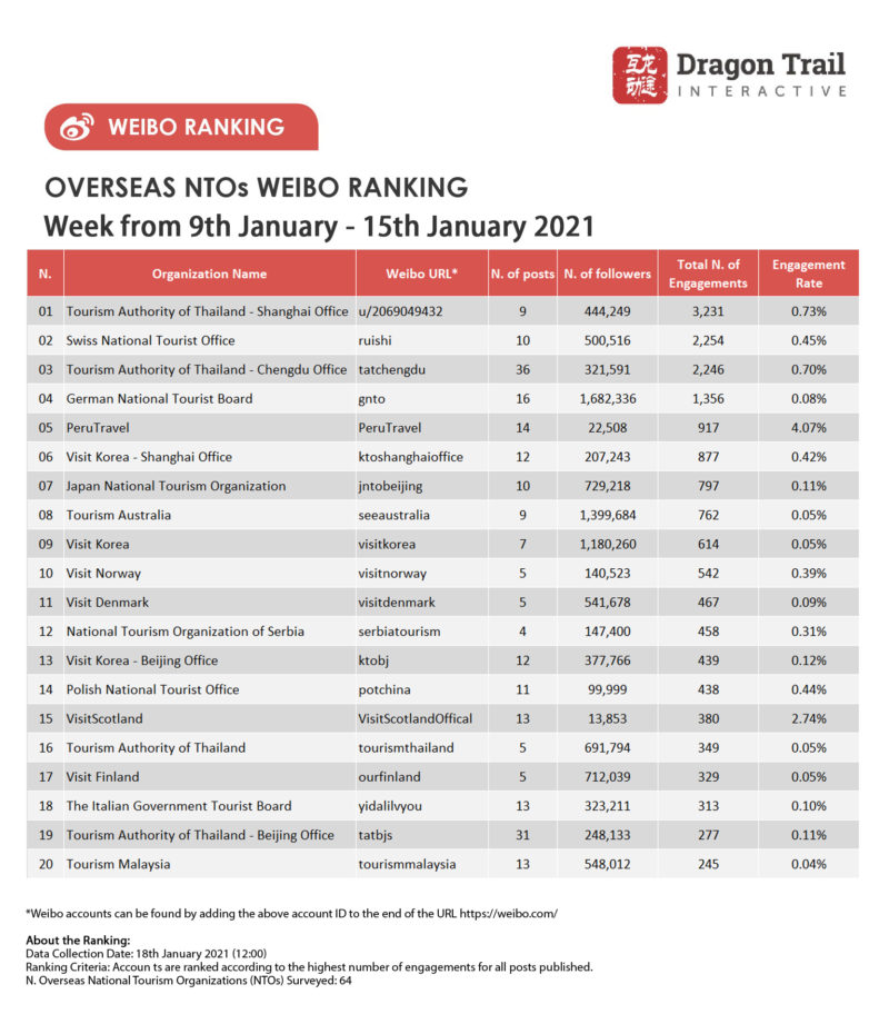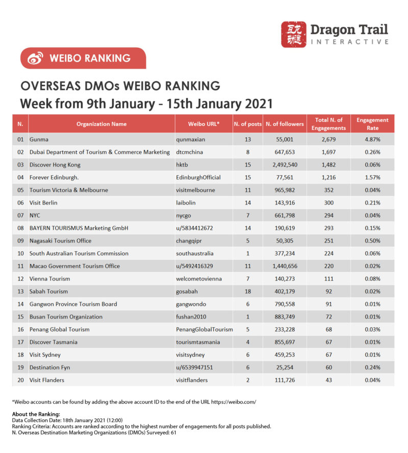 About the data: The data is jointly collected and compiled by Dragon Trail Interactive and Dingla, a B2B travel marketing platform assisting foreign organizations build long term travel trade relationships in China.