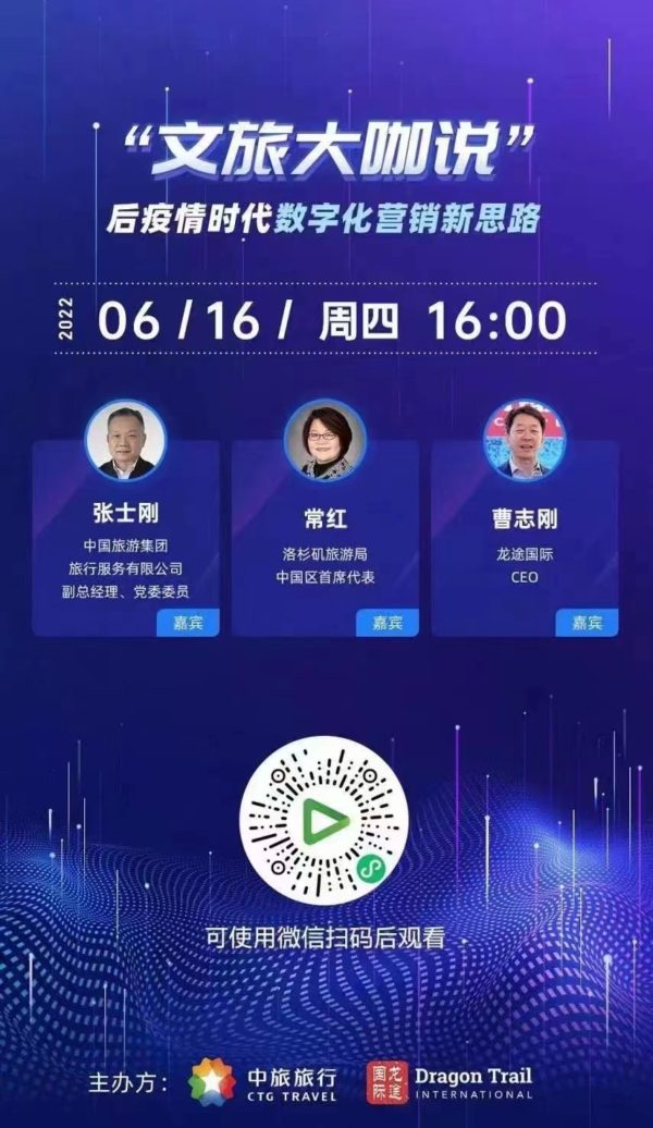 The China Tourism Group (CTG) and Dragon Trail International have partnered to launch a creative live streaming series called “Executive Round Table on Culture & Tourism”. The first session was held on 16 June and broadcast on Dragon Trail’s CTA Live WeChat mini-program. The event attracted 624 live viewers from 250 companies, including tourism organizations, domestic and overseas tourism boards, companies working in the culture and tourism industry and digital sales, and representatives from hotels, attractions and more. The live stream focused on an in-depth discussion about the digitalization of travel industry sales in the post-pandemic era. With a panel of top-line speakers, live Q&A, and lucky draws, the broadcast encouraged lively interaction and audience engagement.