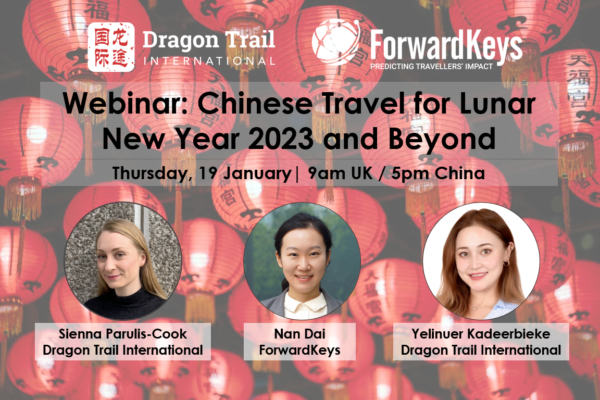 In Dragon Trail’s first webinar of the year, we’re teaming up with leading travel analysts ForwardKeys to give you a snapshot of Chinese travel plans just as the Lunar New Year holiday season kicks off. ForwardKeys will share data on domestic and international flight bookings from China during 2023 so far, as well as for the upcoming New Year holiday period.