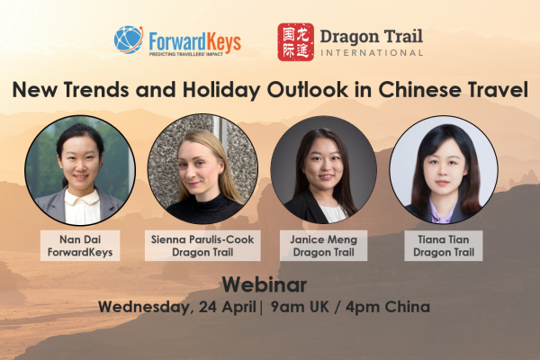 Join Dragon Trail International and ForwardKeys for the latest data on Chinese travel sentiment and flight bookings, ahead of the May Labor Day holiday and summer travel season.