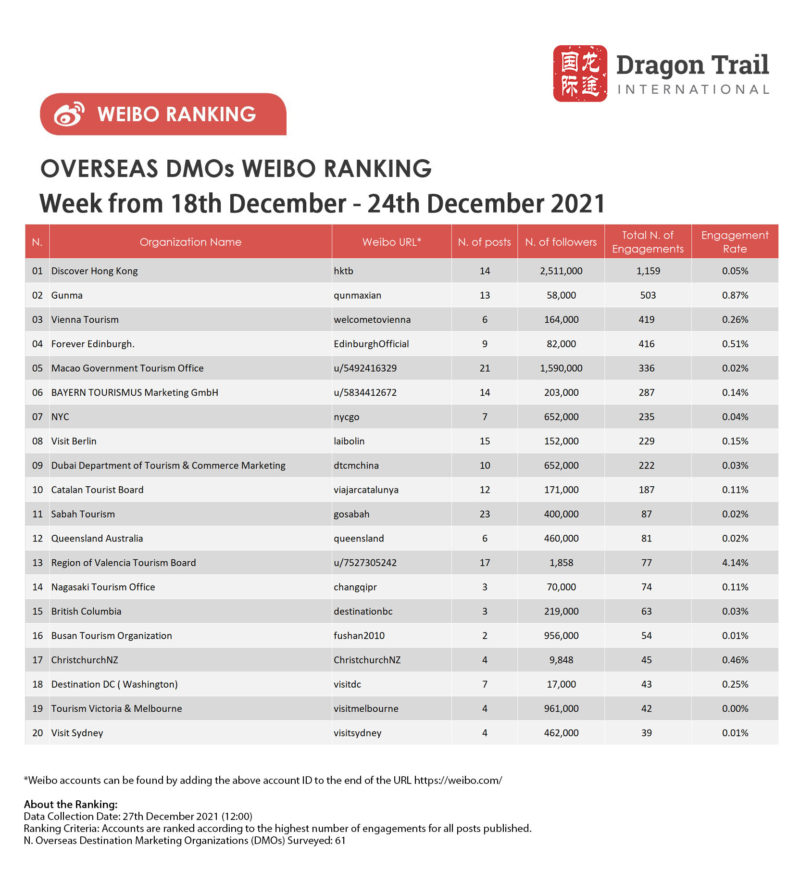 About the data: The data is jointly collected and compiled by Dragon Trail Interactive and Dingla, a B2B travel marketing platform assisting foreign organizations build long term travel trade relationships in China.